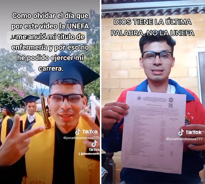 Mediante su cuenta de TikTok (jonathandejesus777), el joven venezolano publico un video que genero todo el problema el cual devino en la anulación de su titulo universitario. El mismo muestra a un grupo de personas que aseguran que no llegaron a aprender lo que se necesita para ejercer la profesión de enfermero y a pesar de ello, consiguieron graduarse.